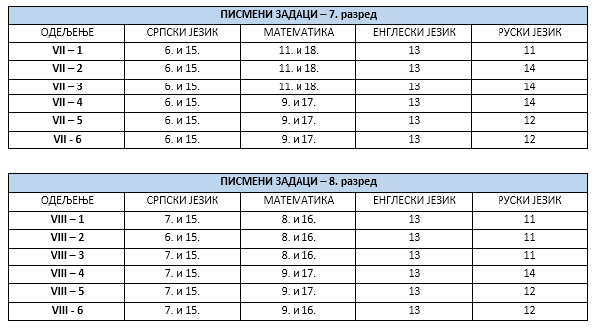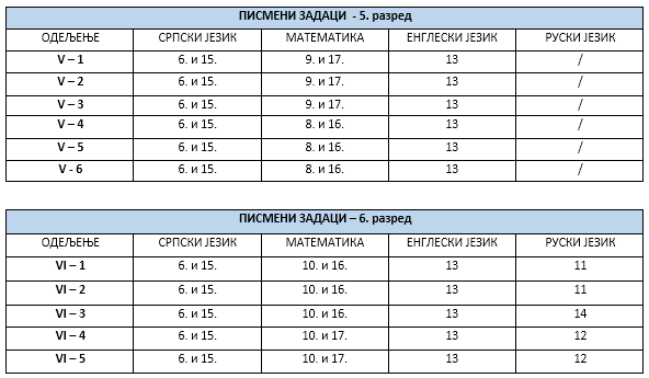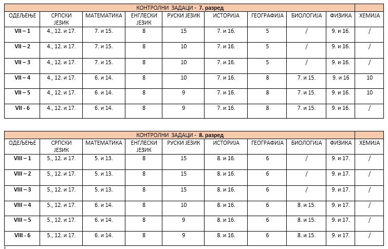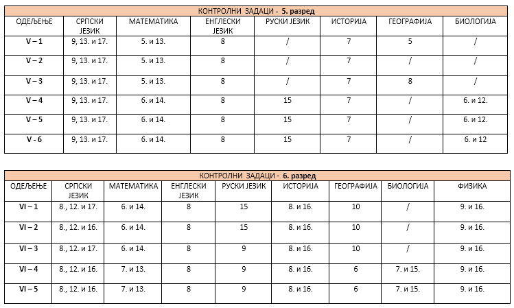 РАСПОРЕД КОНТРОЛНИХ И ПИСМЕНИХ ЗАДАТАКА ЗА ШКОЛСКУ 2025/26.
